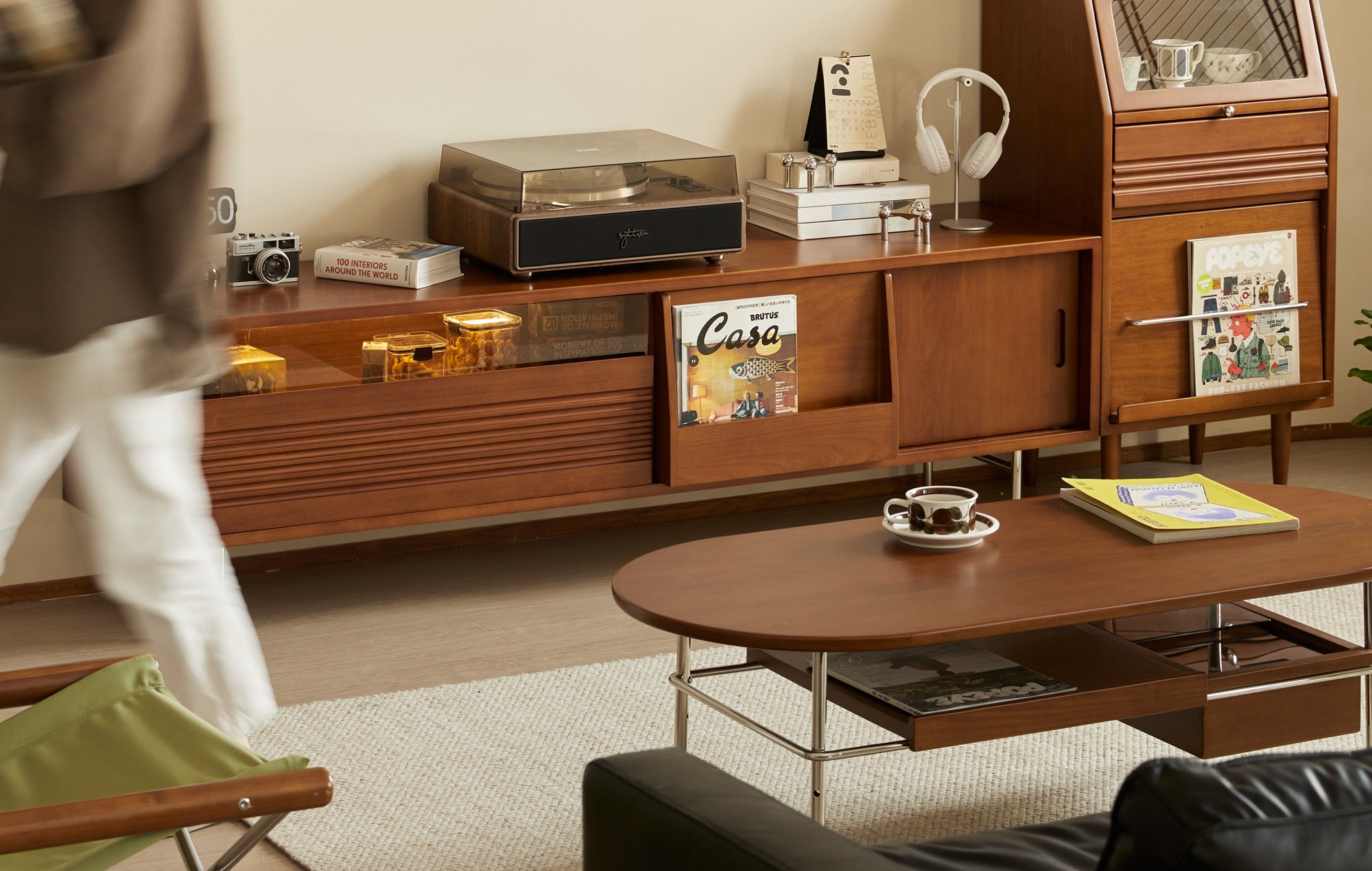 이 디자인은 레트로한 우아함과 따뜻함이 어우러진, 과거에 대한 오마주입니다. 고운 결의 회양목은 자연스러운 아름다움과 고풍스러운 매력을 더하여, 향수를 불러일으키는 동시에 현대적인 공간에도 자연스럽게 녹아드는 완벽한 공간입니다.